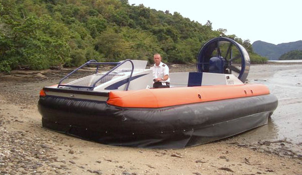 The 380TD is a five seat amphibious hovercraft, suitable for use on inshore, coastal and tidal waters. It is capable of carrying loads of up to 380kg over shallow water, tidal terrain and dry land.
